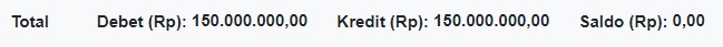Pada Lines Detil bagian bawah akan terlihat Total Transkasi Debet dan Kredit, jika sudah sama maka jurnal sudah balance.
