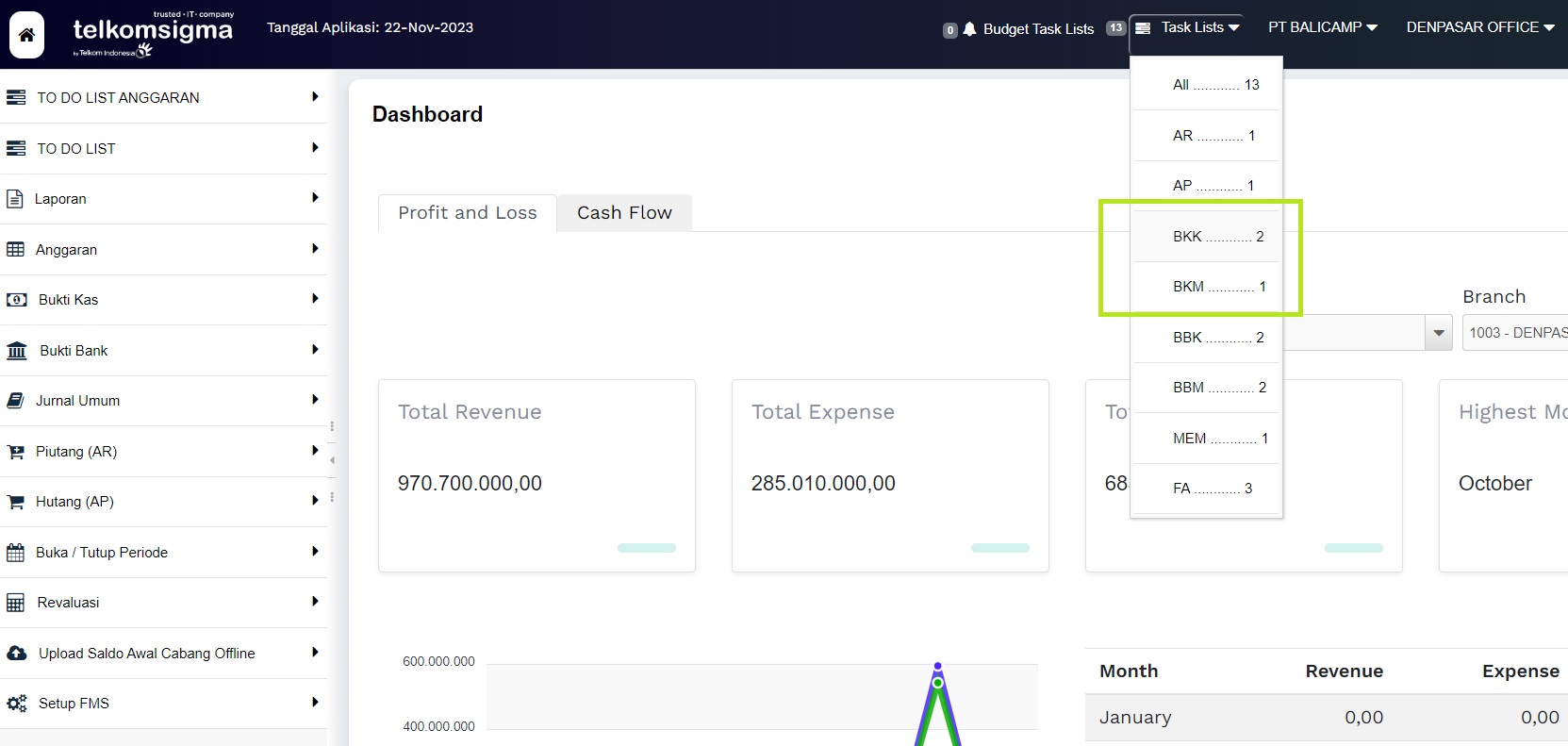 - Masuk ke menu FMS > Bukti Kas > Posting Bukti Kas