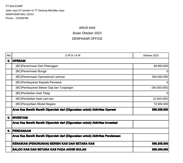 - Kode Kas = Kas Besar Kantor Pusat (Rp)