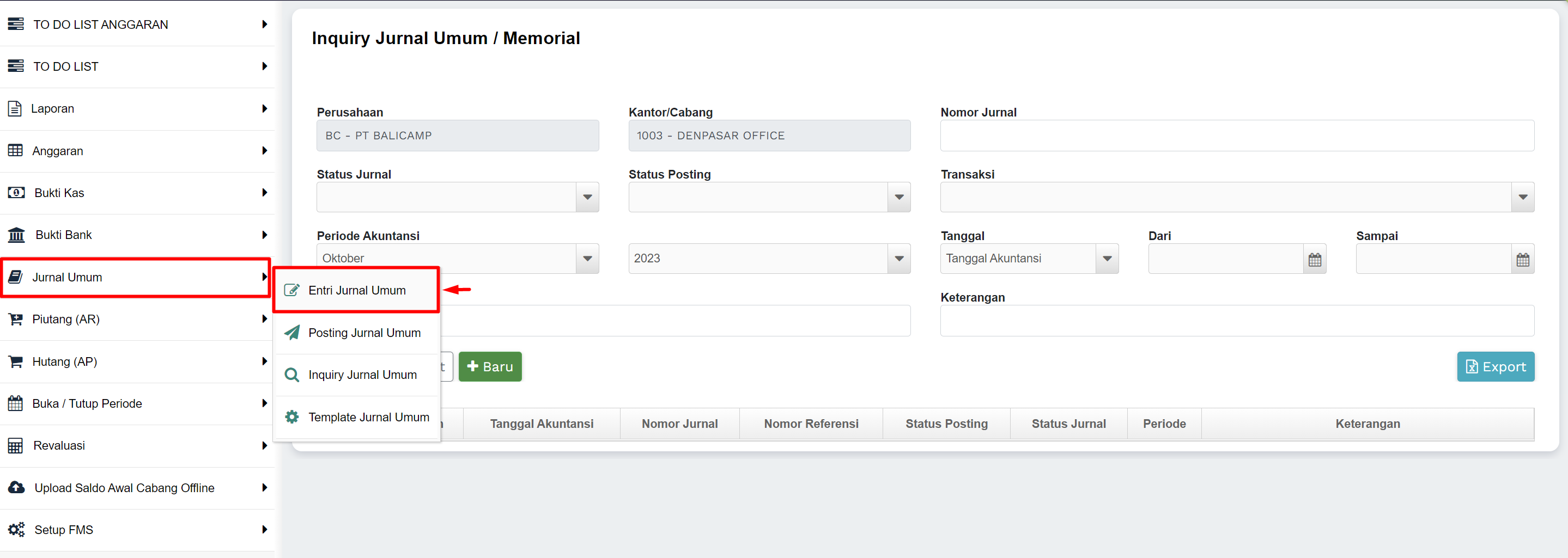 2) Masuk ke menu Jurnal Umum >> Entri Jurnal Umum