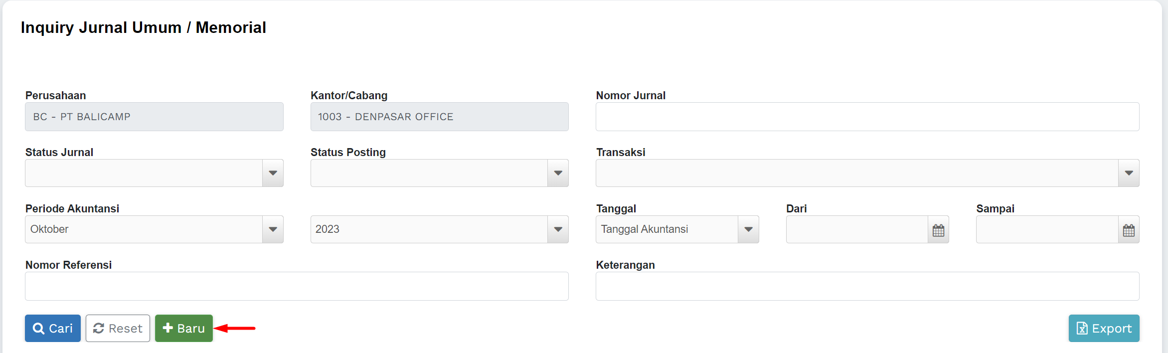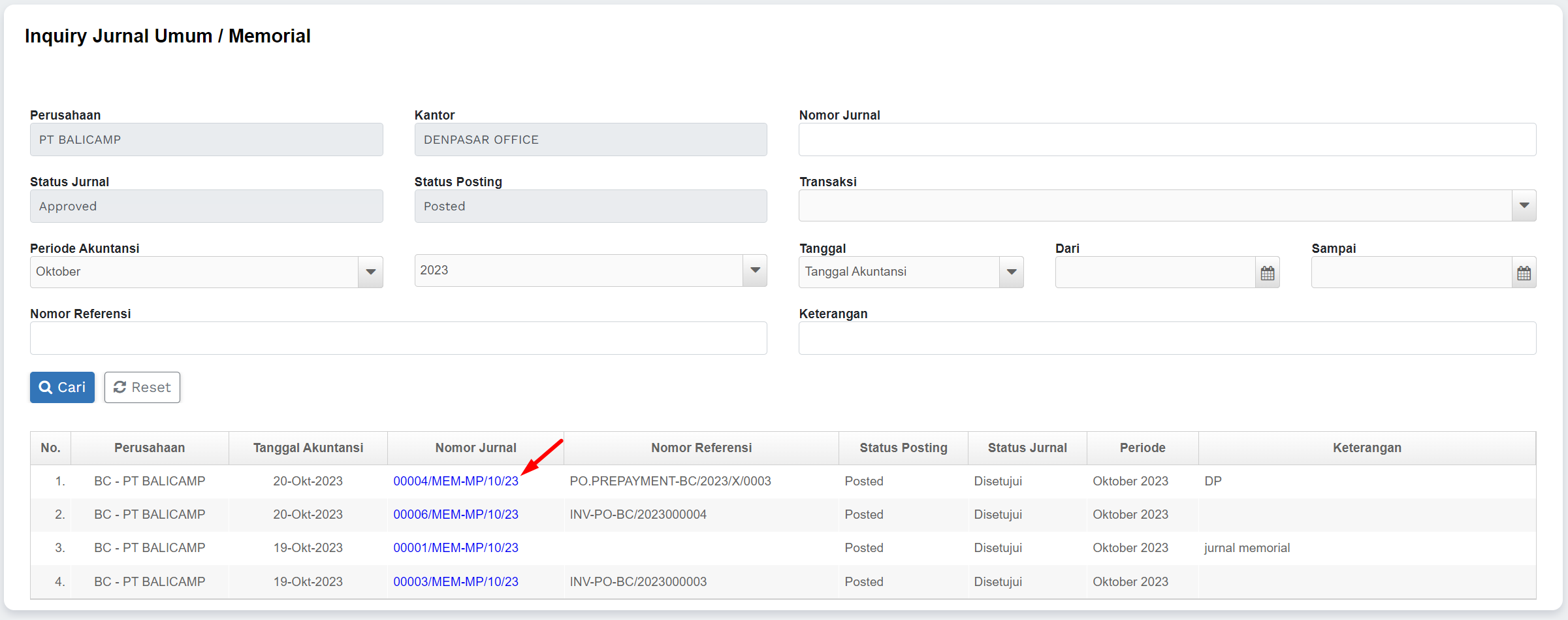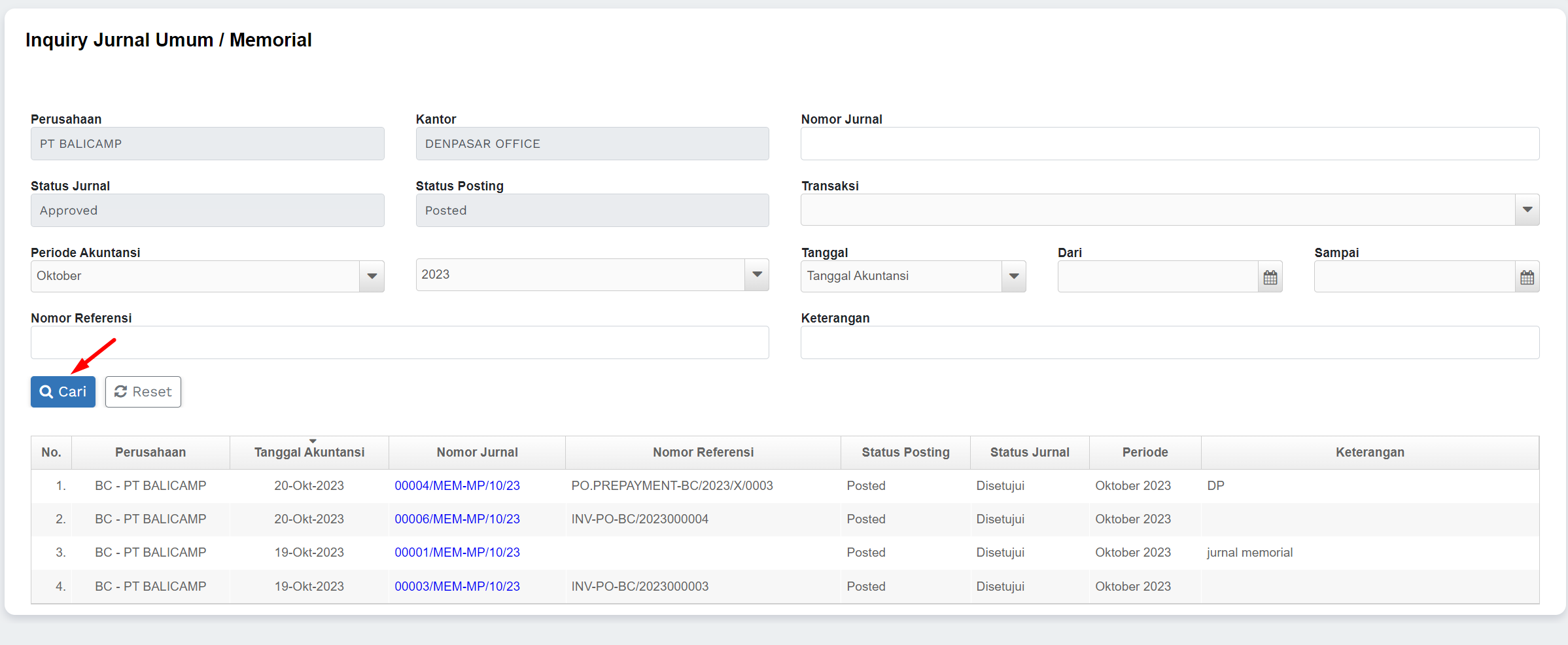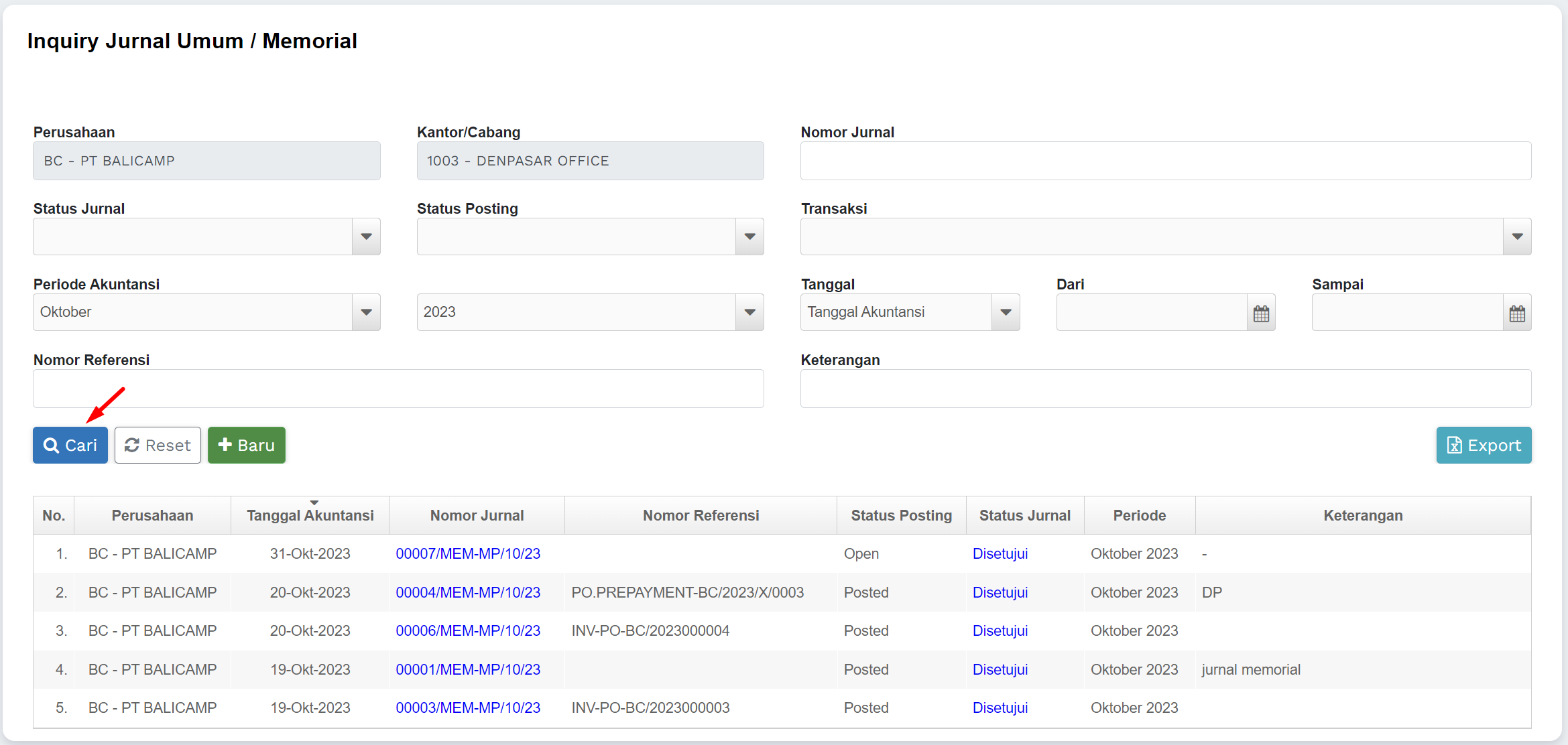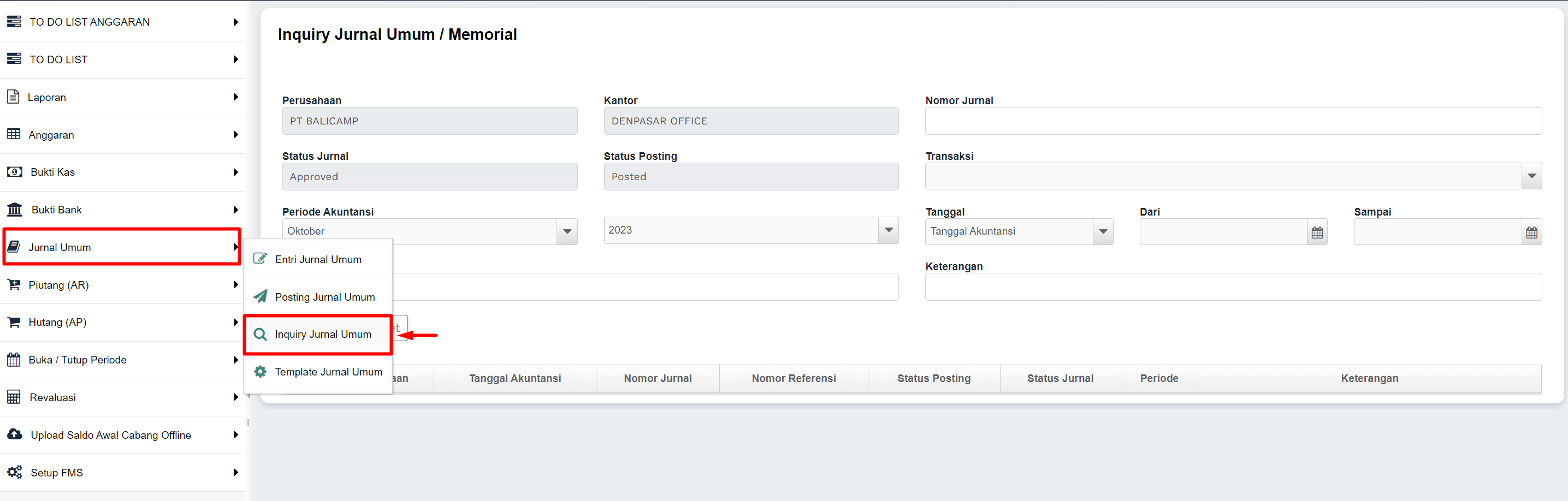 1) Masuk ke menu Jurnal Umum >> Inquiry Jurnal Umum