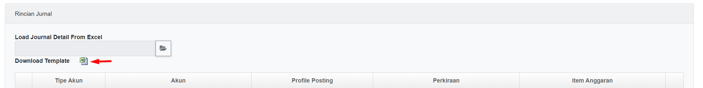 Klik ikon folder pada field “Load Jurnal from template”